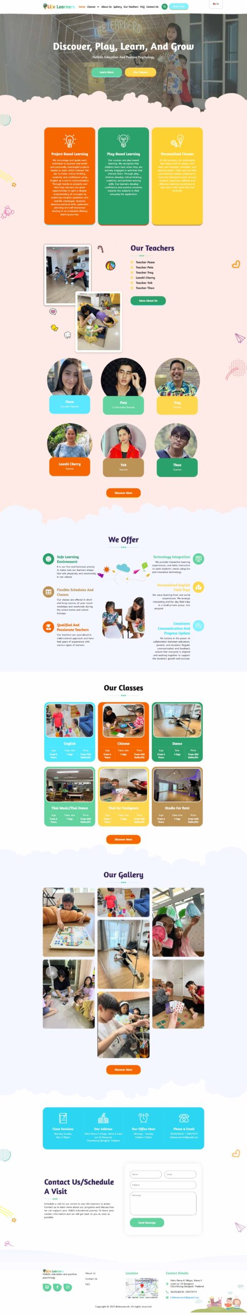 Designed a responsive education website showcasing holistic, project-based learning programs, including language, music, dance, and enrichment classes for all ages.